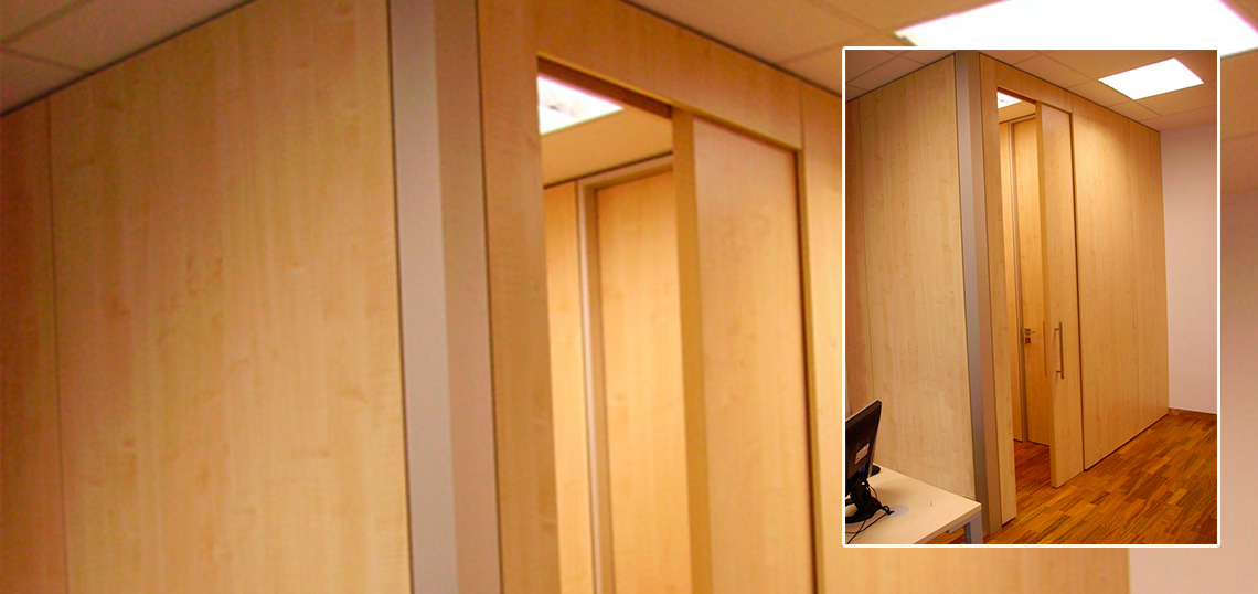 Paneles en melamina: espesor 19mm, canto de 2 mm. perimetralmente.